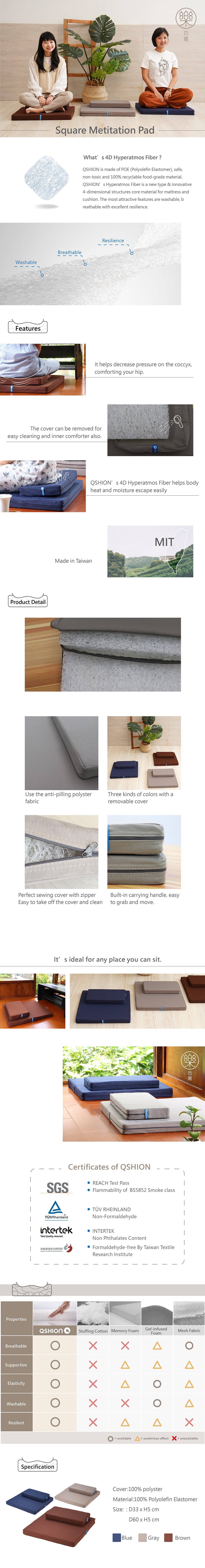 摺疊打坐墊,有墊高功能,適合初學者盤腿入門。全攤平適合進階禪坐使用。打坐墊使用空氣纖維結構設計,兼具支撐性同時又有絕佳透氣效果,久坐不悶熱。摺疊可攜式設計,方便攜帶外出使用。