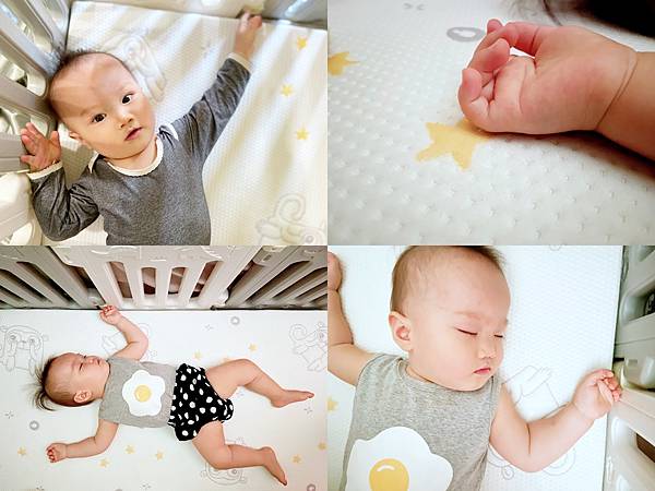 當初Q比出生有買了幾張防撞地墊,在A比出生後就直接拿來當床睡,算是一墊多用來著,