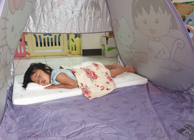 不過孩子們也漸漸長大,老是睡硬梆梆的地墊也不曉得會不會影響骨骼發展,