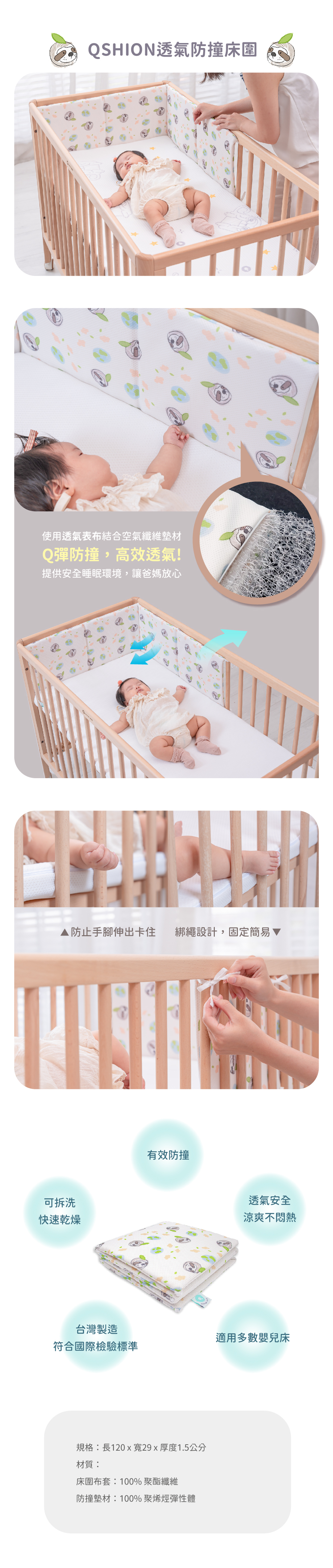 長效散熱透氣,真正方便安全,適合多數嬰兒床架。